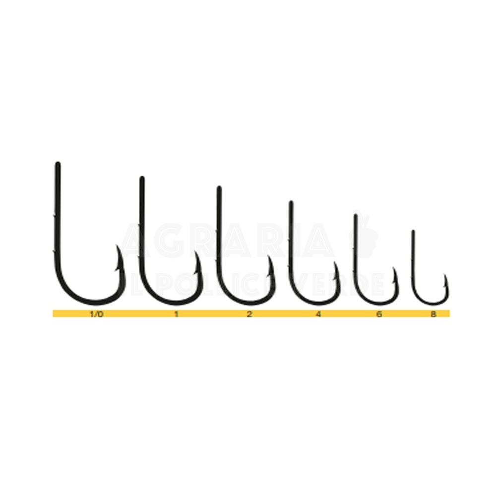 Amo con occhiello semibattuto nella curvatura e con due microardiglioni sul gambo per fissare l’esca. Per queste caratteristiche e la sua forma si presta perfettamente per l’innesco di vermi anche