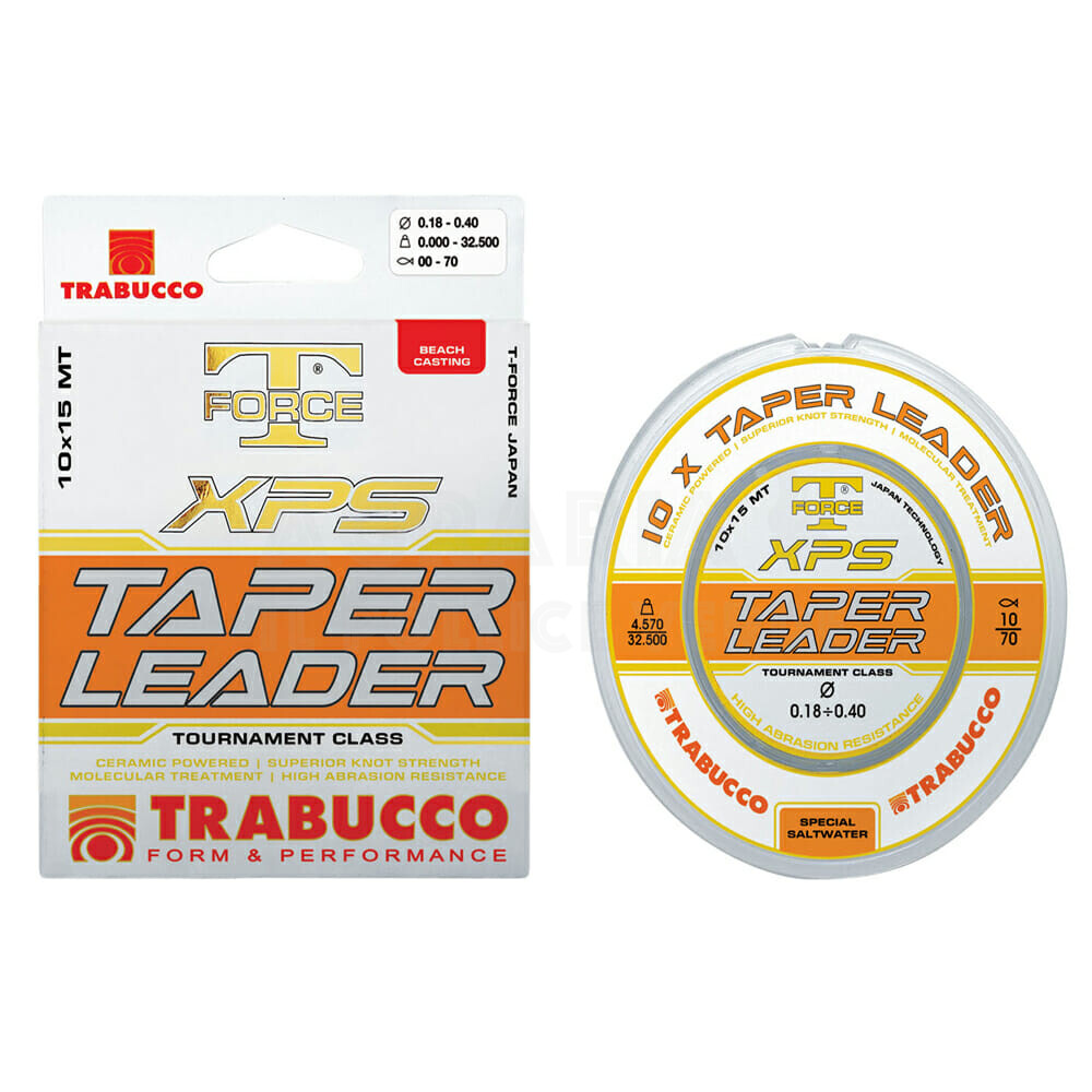 Shock leader conici dotati di eccezionale resistenza all’abrasione e superiore carico di rottura. La gamma è talmente ampia da coprire tutte le necessità del Surf Casting e del Beach Legering moderni. Colore neutro trasparente; bobina con 10 spezzoni di 15 metri.