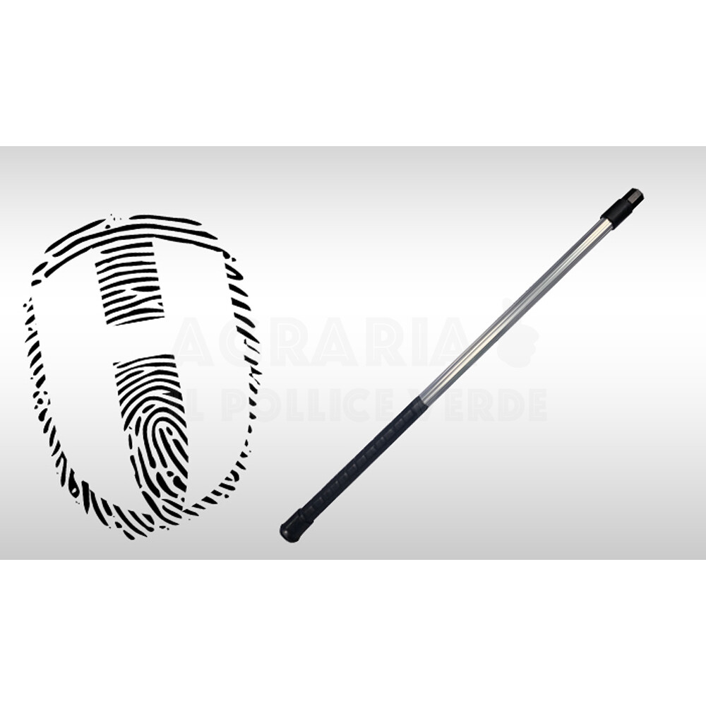 Manico di guadino in alluminio, in 2 sezioni. La chiusura regolabile permette di portarlo alla lunghezza desiderata tra 65,5cm e 123cm.
