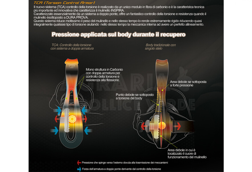 TCA:Controllo della torsione per una migliore precisione e potenza – CFR:Rotore con effetto ciclonico,offre rigidità, leggerezza ed aiuta la scorrevolezza del mulinello – CDB : Disco centrifuga, aiuta a bilanciare il rotore e a migliorare l’apertura e la chiusura dell’archetto – Estrema legerezza grazie al body interamente in carbonio C-40X – Tappo frizione in carbonio per migliorare la progressione della frizione – Frizione con sistema Hydro block – Manovella in alluminio con pomello ultra leggero in Eva – Bobina in alluminio con colorazione a 2 toni – Ingranaggi ellittici – 8 Cuscinetti a sfera +1 per quick Anti reverse system – Disponibile in due colori :BIANCO, ROSSO e BLU
